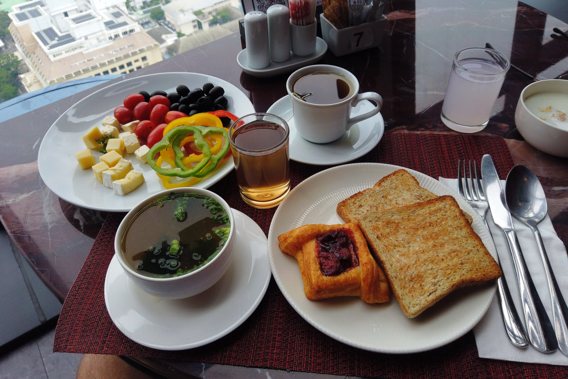 Breakfast is served on the 37th top floor, at XinGu restaurant, offering panorama vistas of the city. With items changing on a daily basis, the following examples of delicious food were part of the more than sufficient buffet: Smile potato (shaped as a smile, and a funny nod for kids); Spaghetti carbonara; Kung pao (shrimp) seafood; Dal Makhini; Stir-fried vegetables; Massamam Gai (an in Thailand well-known and spicy chicken curry); Fruit salad; Miso and vegetable soup; and assorted cheese and cold cuts. There are also egg and congee stations and basically options available for every taste preference – be it Chinese, Indian or Western cuisines.