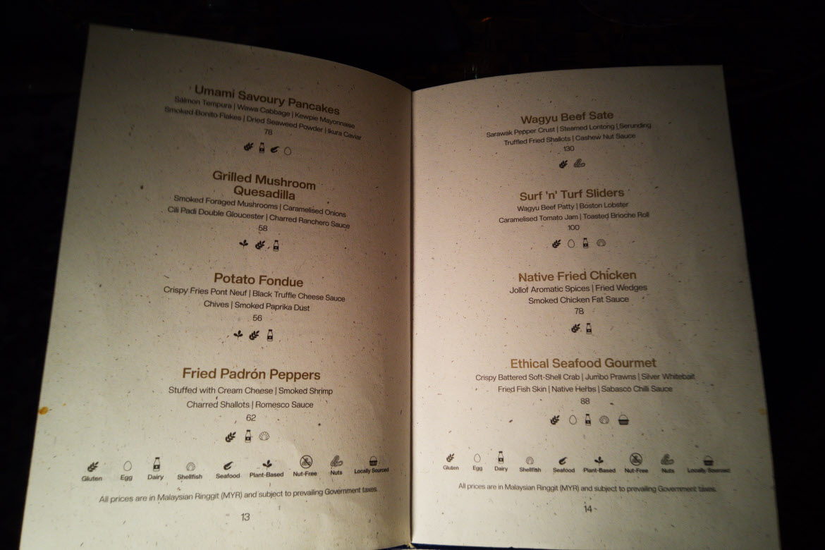 A few other picks to mention from the curated, locally inspired snack (‘From field and forest to river and coast, Malaysia’s abundance finds its way to your plate’) are: Twin prawn rolls (Garlic butter–poached, Bird’s eye chilli remoulade, Bib lettuce, Toasted brioche bun, Prawn crackers, Caviar, Chive Beurre monte dip) or Grilled mushroom quesadilla (Smoked foraged mushrooms, Caramelized onions, Bird’s eye chilli double Gloucester, Charred ranchero sauce).