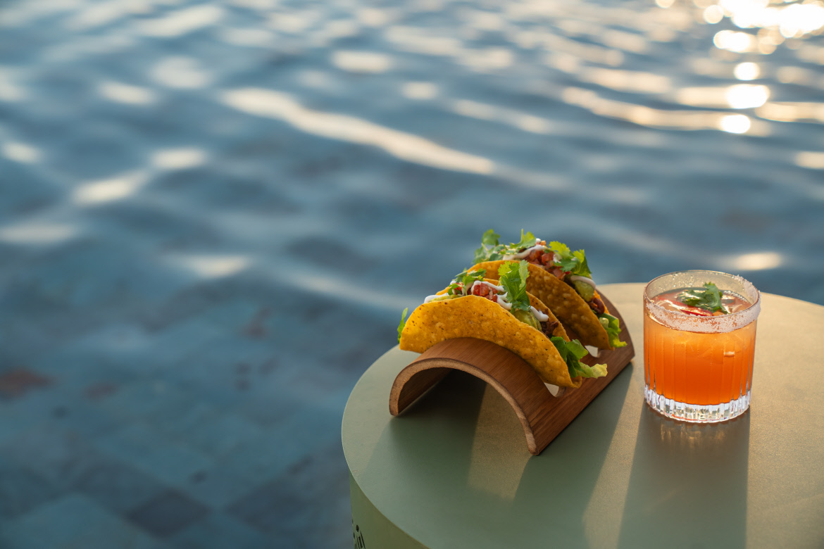 Signature cocktails such as the Yuzu Glow Sunset and Coral by the Bay define afternoons that flow effortlessly into golden-hour gatherings.