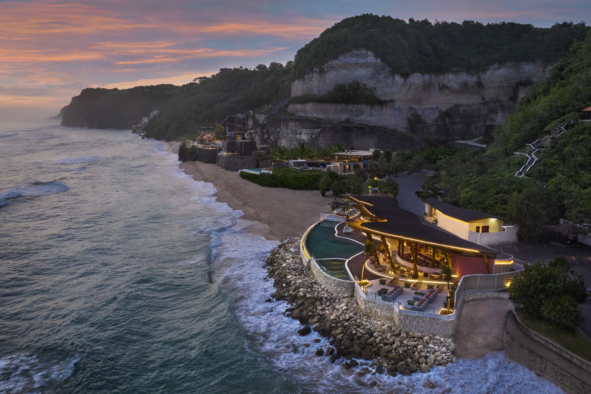 Named after the Balinese word uma, meaning “paddy field,” the venue reflects harmony and connection to land and community. Inspired by the intricate form of the Gelungan ceremonial crown, its terracotta, timber and stone architecture create an alfresco living space on one of the Bukit Peninsula’s most pristine stretches of coastline.