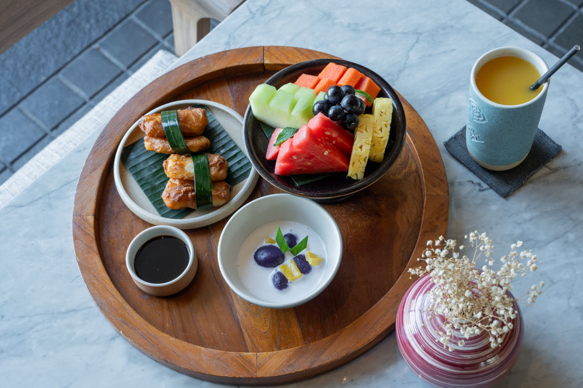 Open from 6:30 am to 10:00 pm, Commune transitions from abundant breakfasts to flavour-driven Southeast Asian dinners. Morning service blends international favourites with Indonesian specialities, including house-made sambals, tropical fruits and locally-inspired dishes prepared to order.