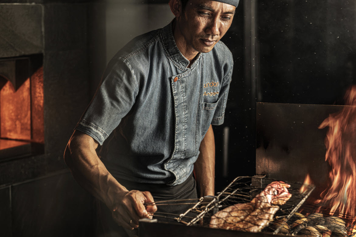 Rooted in his Swedish reverence for the sea and love of Indonesia’s aromatic spices, Chef de Cuisine David Gavin brings over 15 years of fine dining experience to this intimate journey. Chef’s Table honours Jimbaran’s fishing village heritage through whole-fish butchery and hyper-local ingredients: every part of the catch, from crispy skin to marrow-rich bone, is respected and reimagined in a story of eco-conscious cooking. Each course becomes a dialogue between land and sea, memory and flame, crafted with elegance and sustainability at its core.