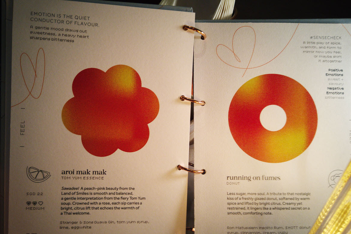 Also, the main menu comes with reference to Orchard road’s past as orchards and gardens, in its floral décor on the cover. Meanwhile, a natural dark green is a theme colour, including for the vests the staff wears, and for the list of the ‘Synaesthesia 2.0’ drinks.