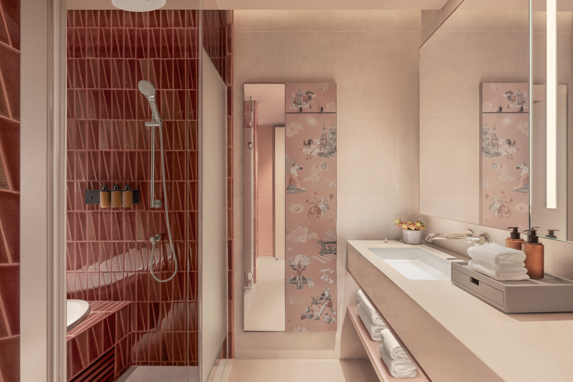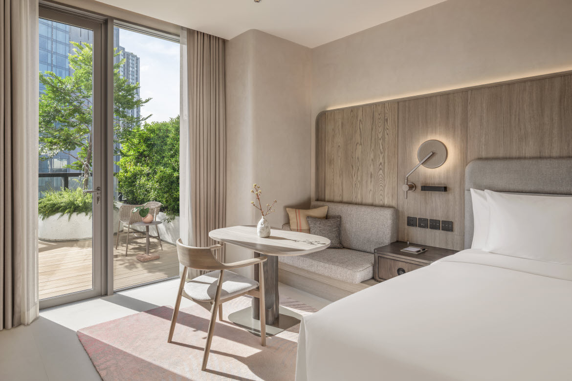 The 306 guest rooms, spanning King and Twin rooms (from 30 square meters) as well as Junior and King suites, are warmed with ruby hues that echo the city’s signature pink sunsets and create a sense of calm. Ruby itself transforms into the figure of a sunbird, with its iridescent feather textures woven into the carpets of both guest rooms and corridors. This subtle detail carries the bird’s vitality and grace throughout the space. Within these private sanctuaries, intricate illustrations by Thai visual artist Nakrob Moonmanas appear on bathrobes, mirrored panels, suite murals, and even inside drawers, each detail designed as a hidden delight that invites guests to pause and explore. The interiors of all guest rooms and corridors were designed by LuxeLife Studio, offering thoughtfully curated spaces that combine comfort and style.