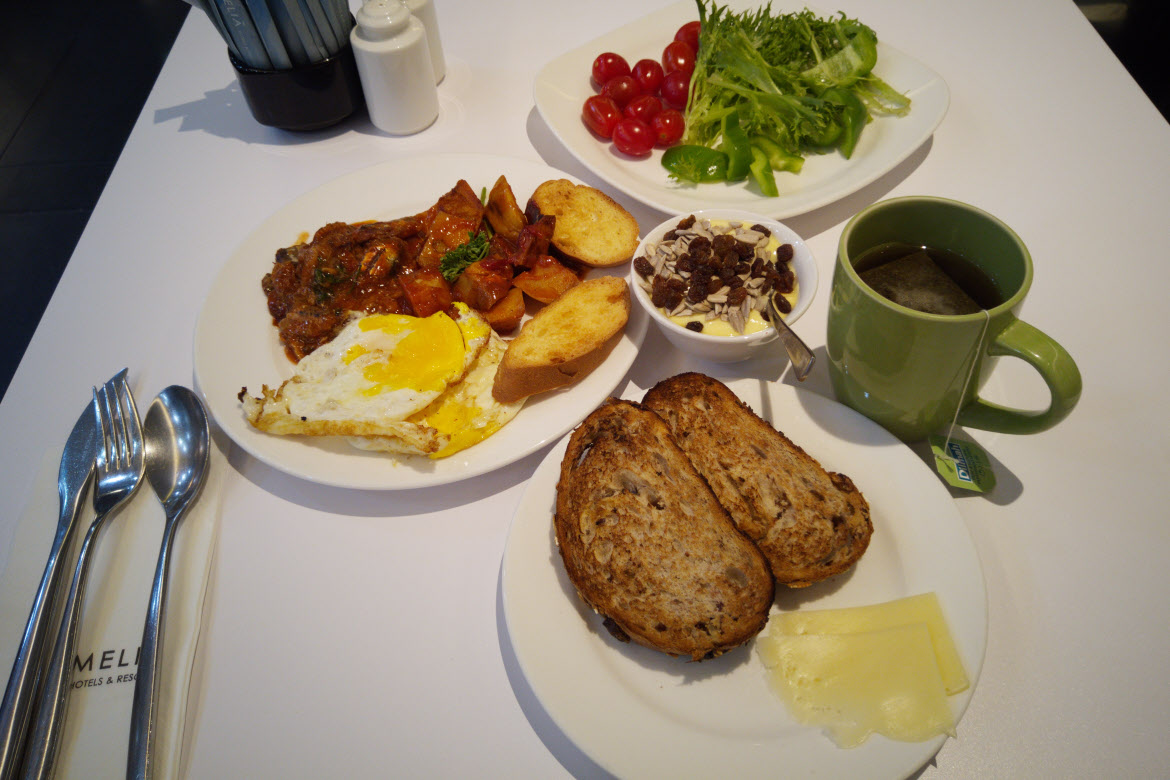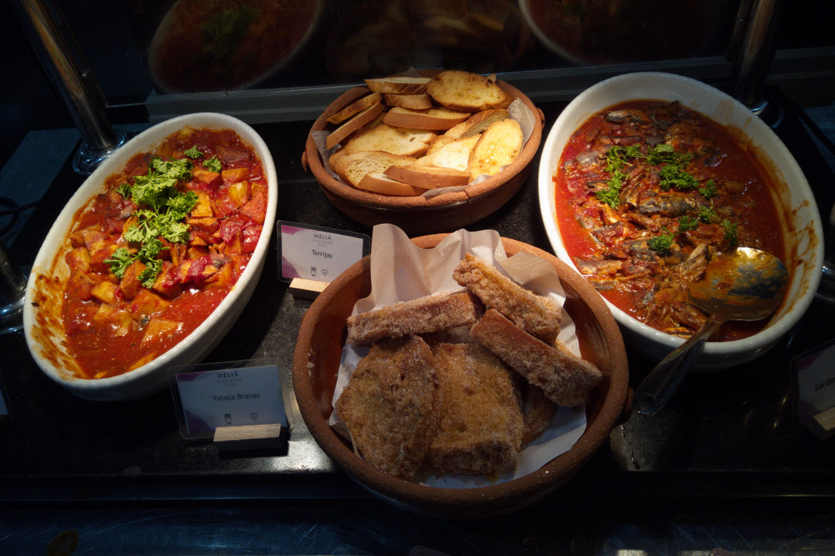 In the morning, if not opting for breakfast in bed, it is served at the hotel restaurant The KiTCHEN Meliá, and unsurprisingly including some well-known Spanish tapas – which add to the differentiation of staying with Meliá, such a Sardinas picantes (Hand cut sardines grilled over wood fire) and Patata bravas (which includes a spicy sauce with fried potatoes), Torrijas (Spanish-style French toast), and Flamenco Eggs (a traditional Andalusian Spanish dish consisting of eggs baked in a rich tomato sauce with various toppings). Actually, Spain’s famous dishes such as Paella and Tortilla began appearing much more frequently at hotel buffets in Asia in recent times, which is excellent – as these dishes are so sumptuous!