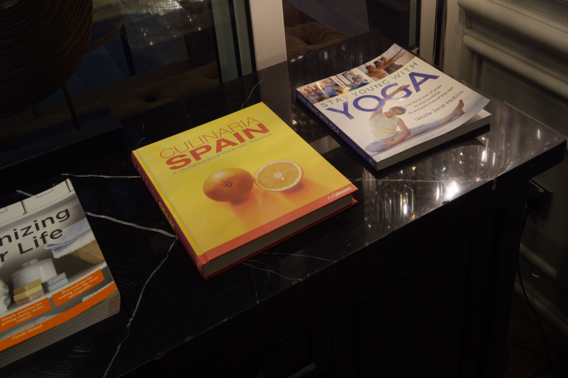 From a cabinet guests can choose their favourite tea flavour. Books on display includes one in Spanish about ‘Culinary Spain’, and one about yoga. Your choice of coffee comes from the in Malaysia popular brand Boncafé.