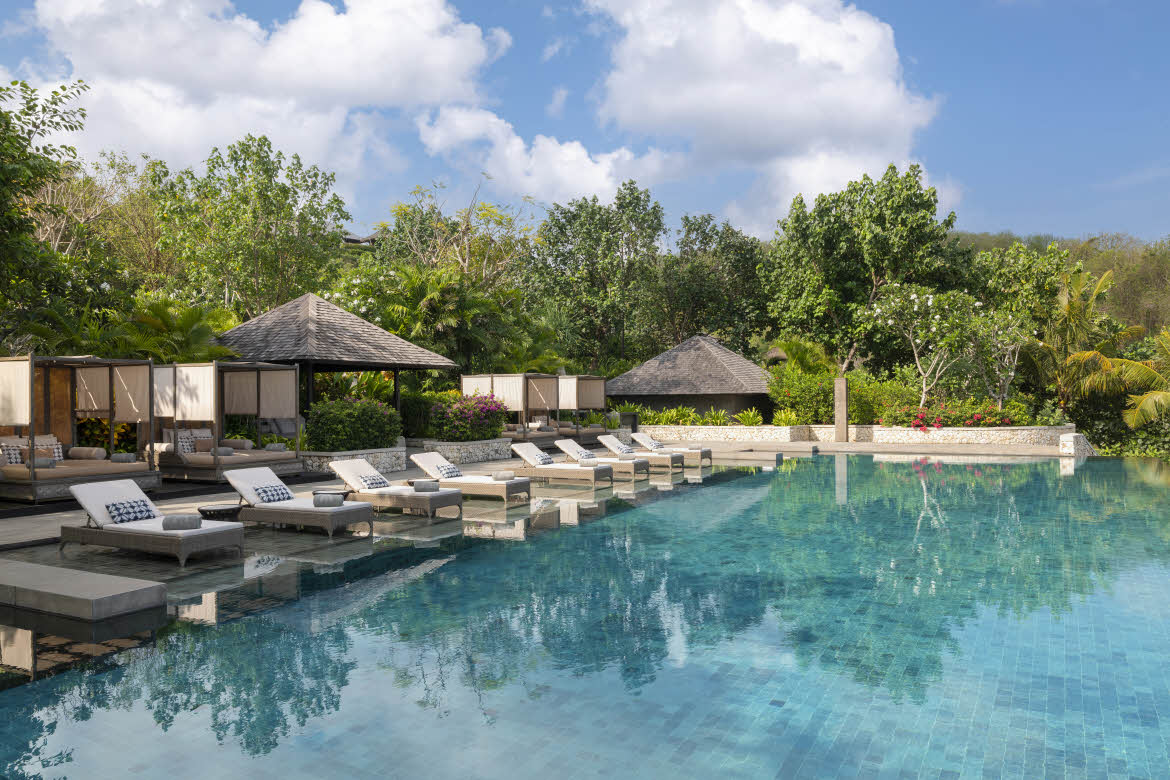 Situated in the picturesque Jimbaran Bay, Raffles Bali offers expansive space and serenity with 32 villas, featuring a private pool and tropical garden, with stunning hillside and ocean views. The resort showcases Balinese craftsmanship through elegant interiors and provides a range of dining experiences, from the “Krug Ambassade” signature restaurant Rumari and The Writers Bar to the beachfront Loloan Beach Bar and Grill, as well as the intimate Secret Cave, Purnama Honeymoon Bale, and Farm Terrace. Guests can enjoy relaxation and wellness at Raffles Spa and partake in authentic cultural activities by community experts. Whether seeking a romantic getaway, a family holiday, a retreat or celebrations, discover the enchanting charm of Bali and experience the personalised service of the legendary Raffles Butler.